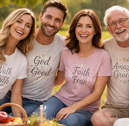 Gentle, joyful, and made for everyday wear — this lightweight crew tee features a marching lion illustration with the uplifting line “Off to Praise the Lord.” The soft ring-spun cotton...